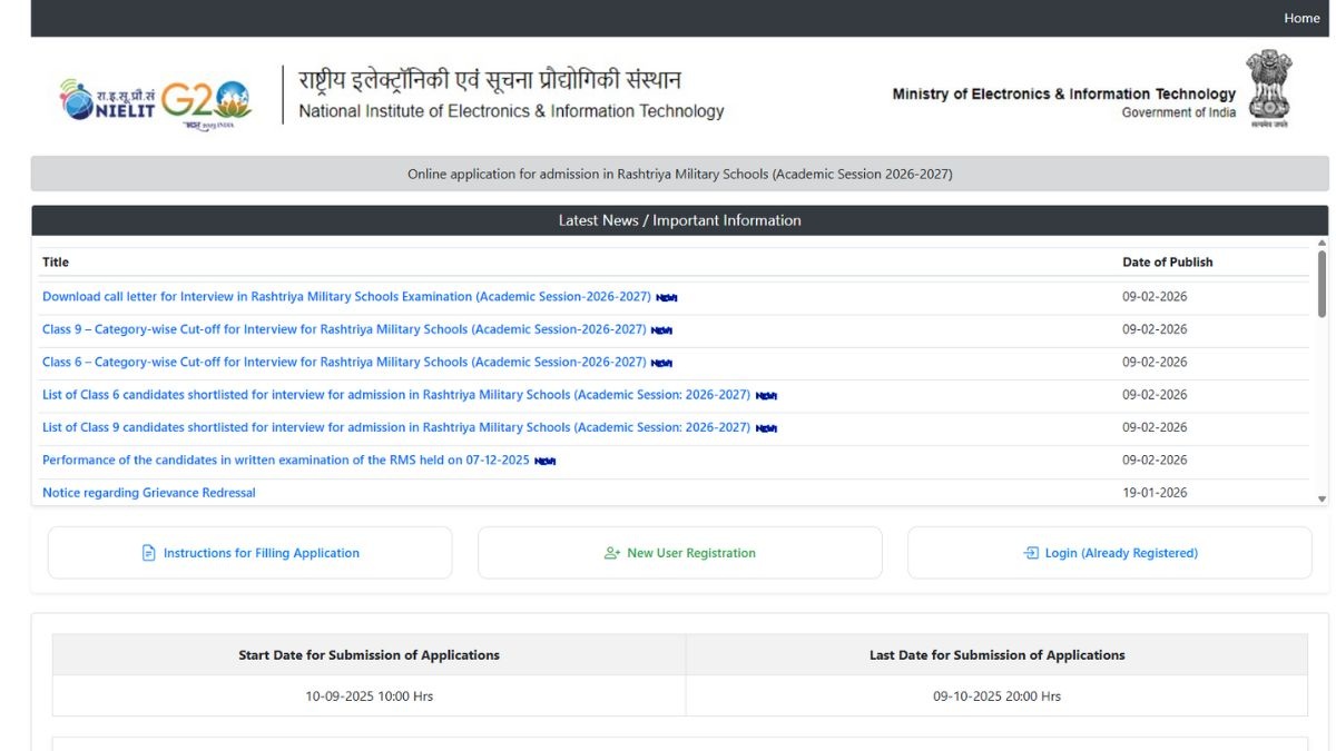 The Rashtriya Military Schools (RMS) Class 6 and 9 entrance exam result 2026 has been declared, the candidates can check and download RMS admission merit list PDF on the official website- delhi.nielit.gov.in. Along with the merit list, the category-wise cut offs for Class 6 and 9 are available for download on the official portal- delhi.nielit.gov.in.